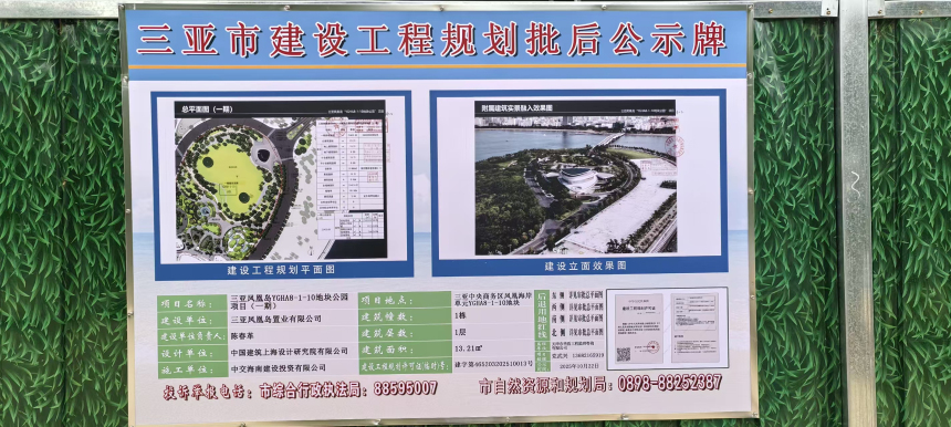 三亚凤凰岛YGHA8-1-10地块公园项目(一期)批后公示
