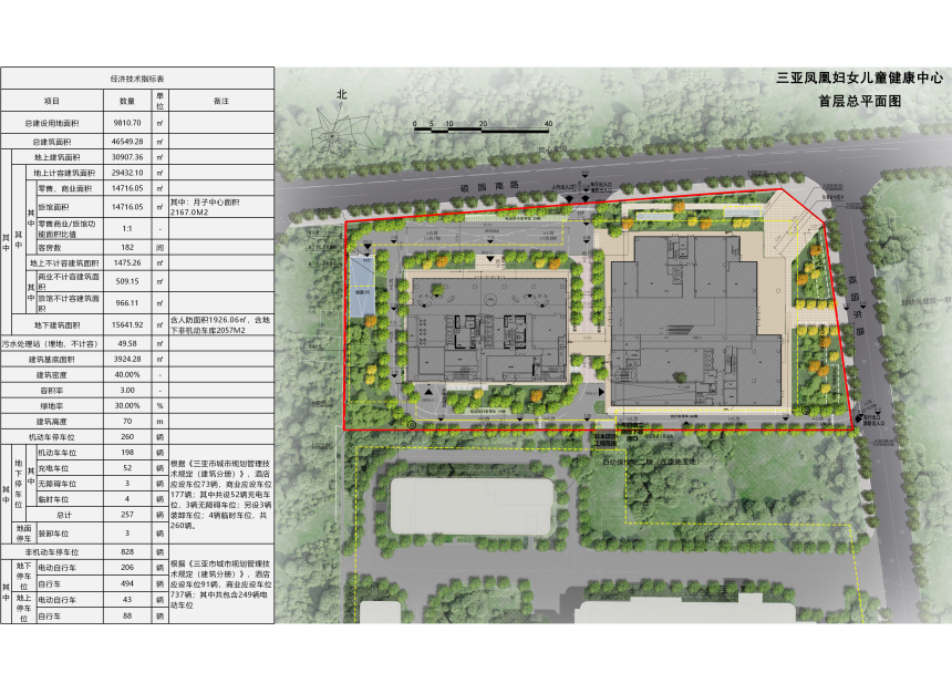 三亚凤凰健康集团拟在市吉阳区临硕园南路权属用地内建设三亚凤凰妇女儿童健康中心项目,主要建设内容为1栋地下2层地上15层商业综合体,总建筑面积为46549.28平方米,其中计入容积率建筑面积为29432.10平方米,容积率3.0,建筑密度40%,建筑高度70米,绿地率30%,机动车停车位260个。 根据有关规定,现按程序对该项目建筑设计方案进行批前公示,公示时间为7个工作日(2026年3月17日至2026年3月25日)。如需听证或对上述建设内容有意见,请于公示结束前反馈,意见反馈方式: 一、电子邮件请发送到:sy88362336@sanya.gov.cn; 二、书面意见请邮寄到:三亚市河东路152号,三亚市自然资源和规划局建设工程科,邮政编码:572000; 三、咨询电话:88271879,联系人:王凯。 意见反馈请注明联系方式,单位反馈意见并加盖公章。 附件:1.项目区位图 2.项目效果图 3.项目总平面图