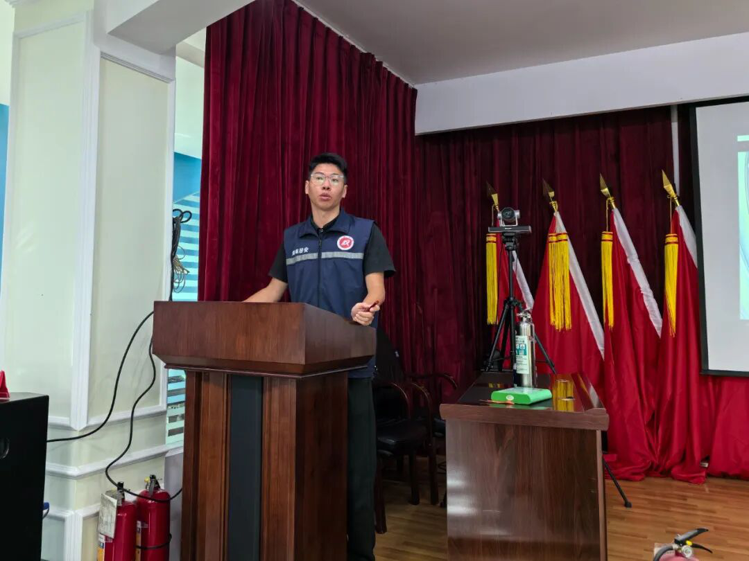 此次讲座紧扣“预防为主、防消结合”消防工作指导方针,结合实际,聚焦电气火灾高发隐患,重点普及“及时断电”核心要求:强调大功率电器专线专用,杜绝私拉乱接与超负荷用电,定期排查线路老化、插座破损等问题,做到人走电断、不留隐患,从源头防范火灾风险。同时,现场系统解读“四懂四会”实操技能:懂火灾危害性、懂预防火灾的措施、懂扑救初期火灾的方法、懂得逃生疏散的方法;会报警、会灭火、会逃生、会使用消防器材。通过案例分析与要点拆解,帮助参训人员快速掌握灭火器操作、逃生等实用技能,提升应急处置能力。